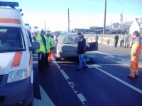 Un autoturism a intors în mijlocul drumului şi a fost luat în plin de un TIR care circula regulamentar. Echipajele de poliţie şi SMURD se îndreaptă spre locul accidentului.