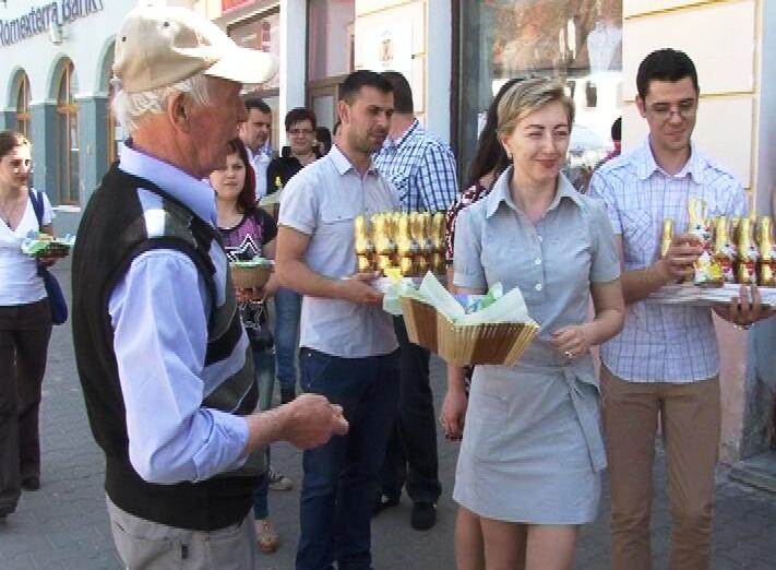 Organizaţia de tineret al Partidului Social Democrat (PSD) Mediaş, în colaborare cu organizaţia de seniori, au oferit astăzi cadouri specifice Sărbătorilor Pascale medieşenilor aflaţi în zona centrală a municipiului.