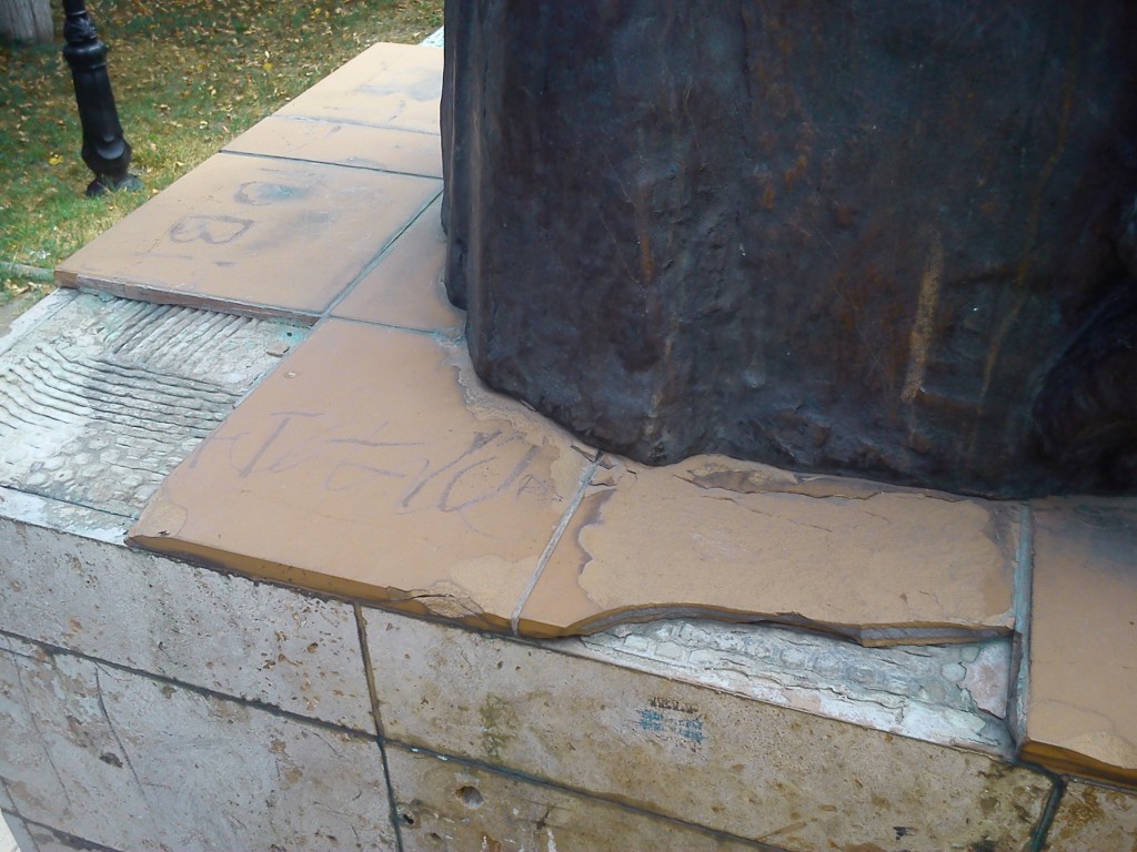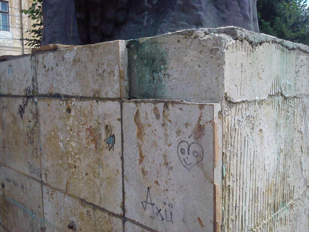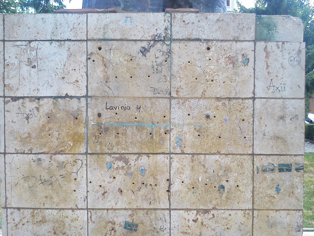 Statuia poetului naţional amplasată în parcul de pe strada Mihai Viteazul din municipiul Mediaş se degradează constant. Din soclul acestuia lipsesc mai multe bucăţi, unele aruncate în jur, peste tot sunt diferite inscripţii, cu vopsea sau cretă, cei care au trecut pe acolo şi-au scris numele, iar statuia esta şi ea mâzgălită cu vopsea. Una peste alta imaginea locului este departe de ceea ce s-a dorit în momentul amplasării statuii, la doi paşi de şcoala care poartă numele poetului naţional.