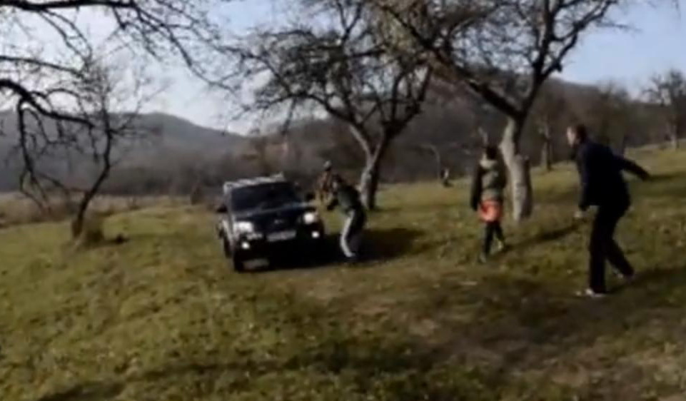 TREBUIA SA NU INTERVINA POLITIA, SA-SI FACA OAMENII SINGURI DREPTATE SI NU MAI VEDEAI PICIOR DE CHEVRONIST IN ZONA. ASA TREBUIE PROCEDAT, DACA EI NU INTELEG CAND LI SE EXPLICA FAPTUL CA NU AU CE CAUTA PE PROPRIETATEA LOR, OAMENII AU DREPTUL SA SI-O APERE. MASINA SE POATE DISTRUGE INCLUSIV IAR INFRACTORUL BATUT PANA NU MAI MISCA