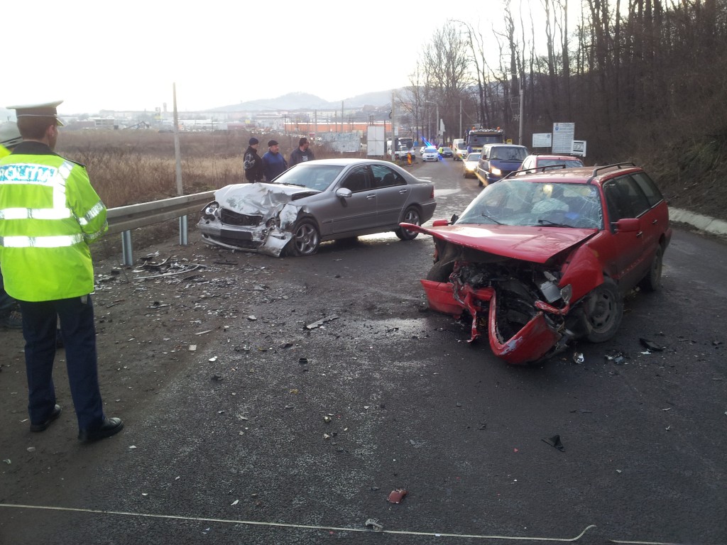 UPDATE 7:53: Traficul în zonă se desfăşoară pe un singur sens şi este dirijat de către poliţiştii aflaţi la locul accidentului.