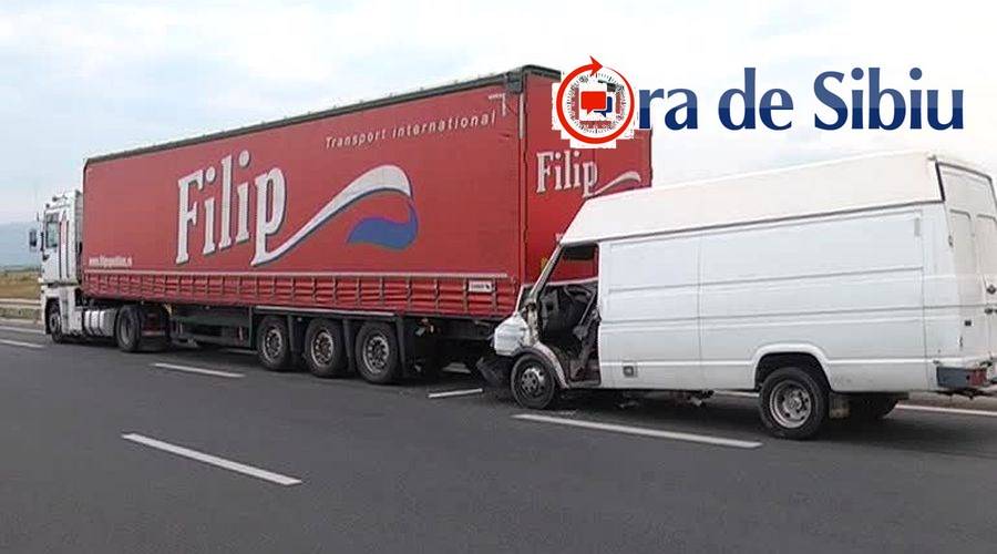 VIDEO ACCIDENT PE A1 | Un microbuz a intrat într-un TIR care staţiona