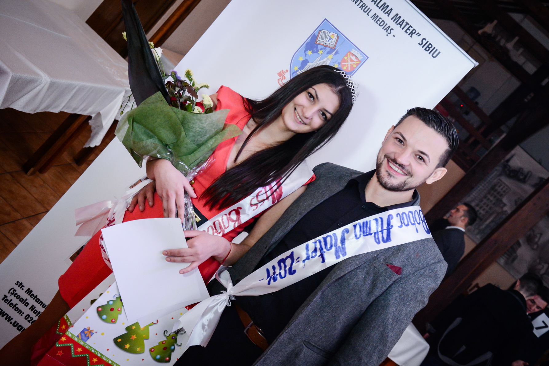 Balul Bobocilor Alma Mater şi-a desemnat şi câştigătorii. Astfel titlul de Miss Alma Mater Mediaş 2014 a fost câştigat de Dana Muscă, iar titlul de Mister Alma Mater Mediaş 2014 a fost câştigat de Bogdan Moţ.