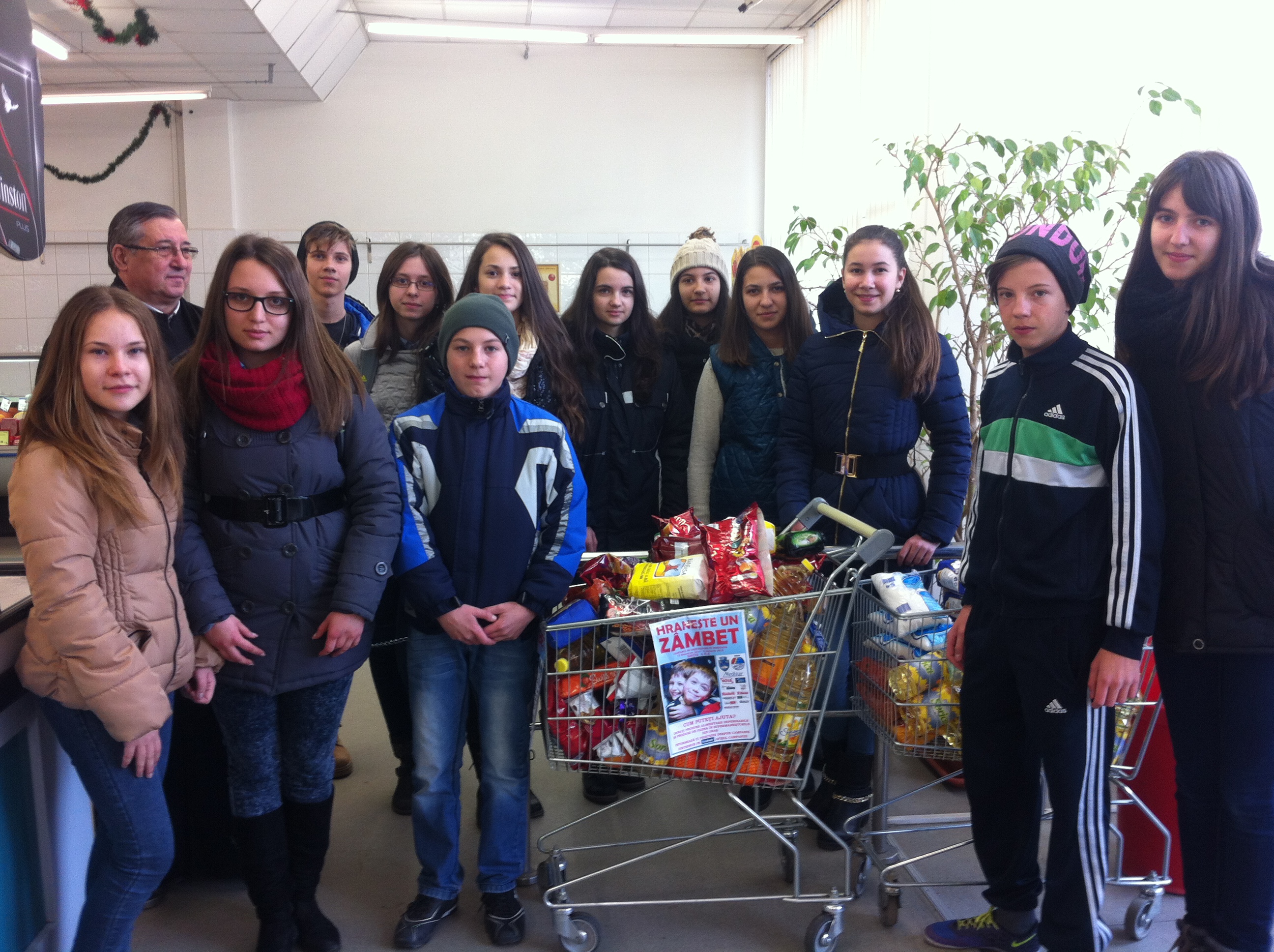 Aceştia au făcut cumpărături într-un supermarket din cartierul Gura-Câmpului pentru colegii lor nevoiaşi. Elevii au fost îndrumaţi de preotul paroh Gâdea Grigore Doru, care este de altfel şi profesor la această şcoală.