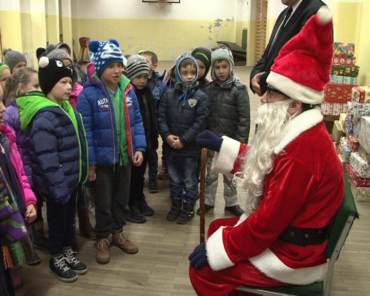 Moş Crăciun a ajuns astăzi la Şcoala Generală Numărul 4 din zona centrală a oraşului. Elevii l-au primit cu bucurie şi colinde, iar acesta le-a oferit fiecăruia câte un dar pregătit pentru ei de copii din Germania.