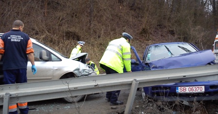 Accidentul s-a produs pe DN 14, la ora 12,06, la iesirea din Mediaș spre Tarnava. Un autoturism care se deplasa spre mun. Medias, intr-o curba la dreapta, pe fondul neadaptarii vitezei de deplasare la conditiile de drum, a derapat fiind acrosata de un auto care circula regulamentar din sensul opus.In urma accidentului a rezultat decesul unei femei de 45 de ani, pasagera in auto vinovat de producerea accidentului. Totodata, soferul masinii care a intrat in derapaj, un barbat de 44 de ani, din Richiș a fost grav ranit iar o fata, pasagera in aceeasi masina, pe locul din fata, a fost transporata la Spital.