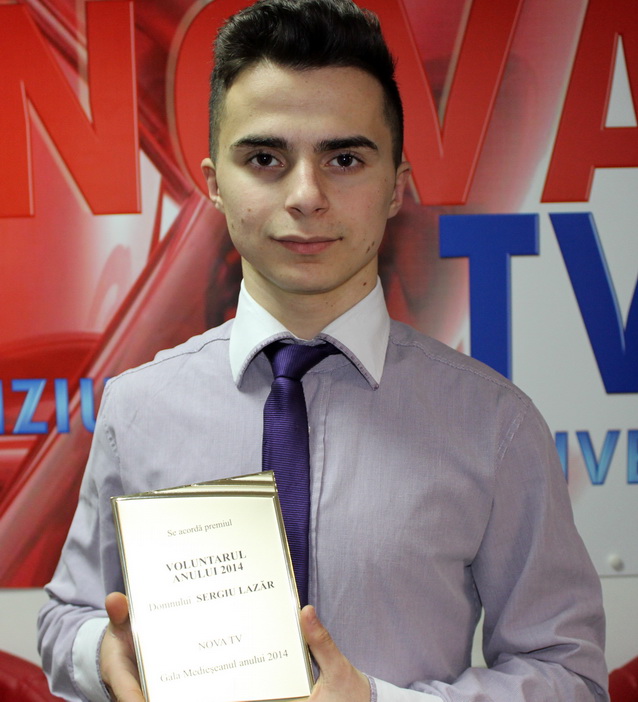 Acasă Nova TV Nova TV Sergiu Lazăr este ,,Voluntarul Anului 2014’’ la Mediaş | VIDEO De către Alex Pîntea - 13.02.2015 274 Sergiu Lazăr este ,,Voluntarul Anului 2014’’ la Mediaş în viziunea celor care au votat pe pagina web a Nova TV. Primarul tinerilor a obţinut cele mai multe voturi la această categorie din cadrul concursului ,,Medieşeanul Anului 2014’’.
