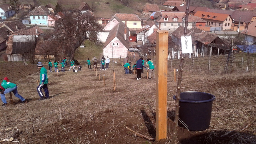 ,,La activitate au participat elevii claselor a VI-a, care sub coordonarea tehnică a managerului Livezii Demonstrative Mălâncrav, Dan Marton, au plantat 33 de pomi fructiferi din soiuri autohtone din Transilvania. Elevii au avut oportunitatea să învețe teoretic dar și practic, cum se plantează corect un pom fructifer. Îngrijirea pomilor plantați va fi preluată în fiecare an de către elevii clasei a VI-a, astfel asigurându-se sustenabilitatea acestui proiect. Activitatea de plantare s-a încheiat cu prăjituri și cu degustare de suc ecologic de mere produs în livada Fundației Mihai Eminescu Trust din Mălâncrav.