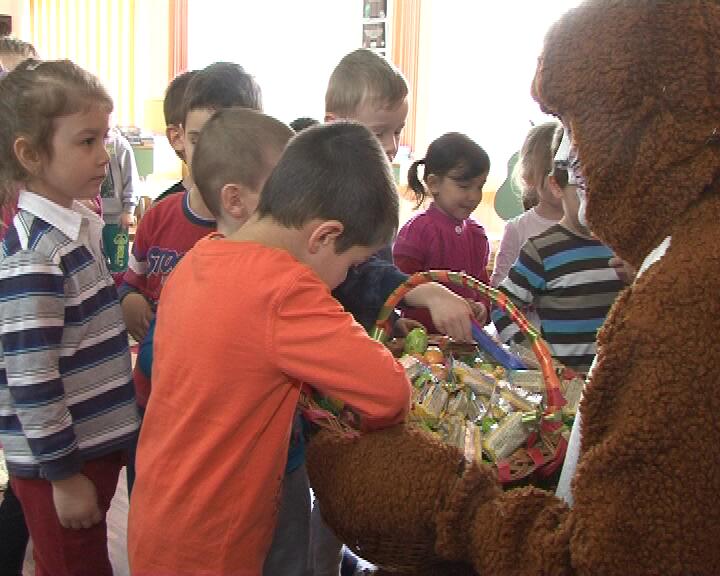Săptămâna aceasta, Iepuraşul de la Meditur va trece pe rând pe la mai multe grădiniţe din oraş pentru a lua desenele şi creaţiile cu temă pascală realizate de preşcolari. În această dimineaţă el a ajuns la grădiniţa Dumbrava Minunată.