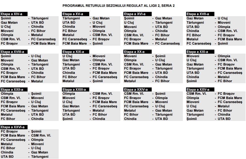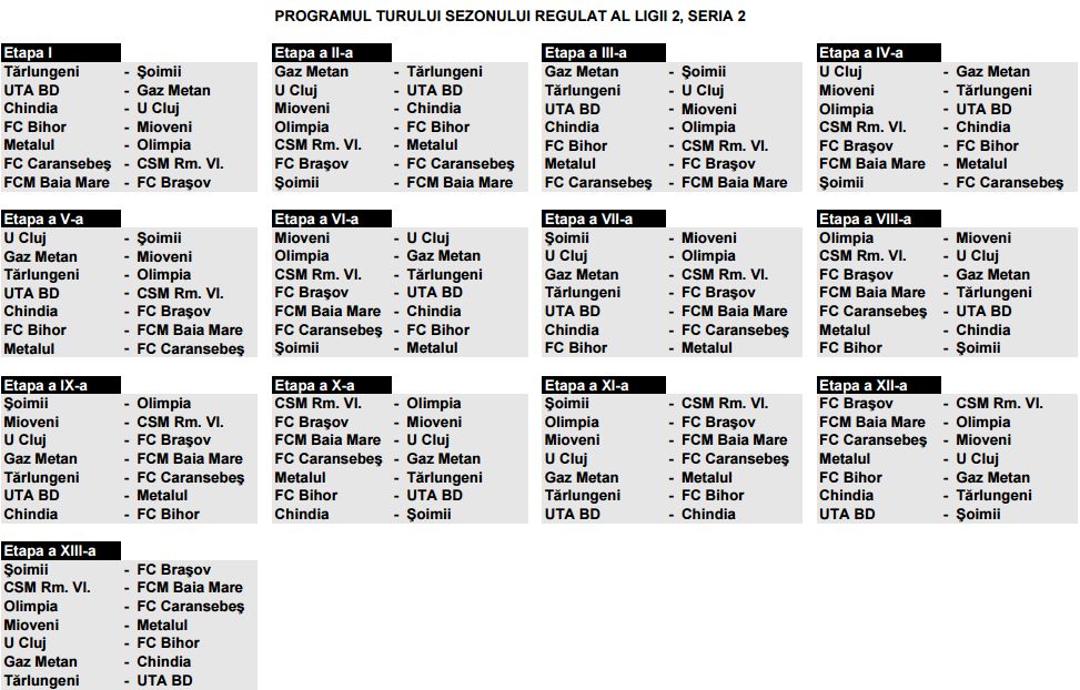 Mai jos puteţi vedea programul complet în Seria a doua din Liga a doua.