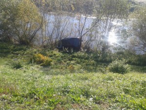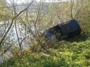 Un autoturism marca Opel înmatriculat în Maramureş a zburat pur şi simplu până aproape în râu. Acesta venea dinspre strada Stadionulului şi cel mai probabil din cauza vitezei excesive a pierdut controlul volanului, a doborât un stâlp care anunţa o trecere de pietoni şi a ajuns în copacii de pe malul Târnavei.