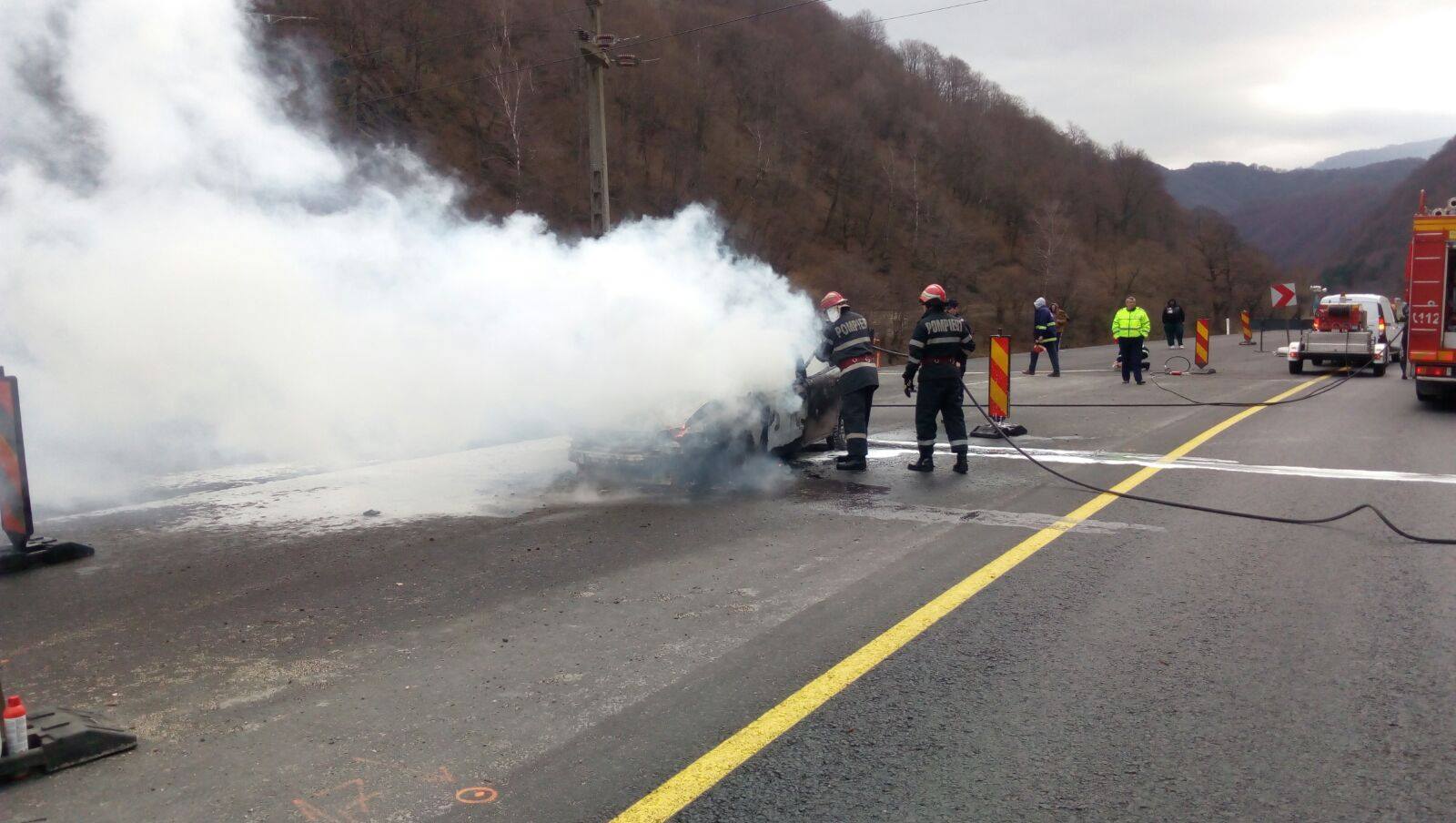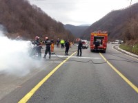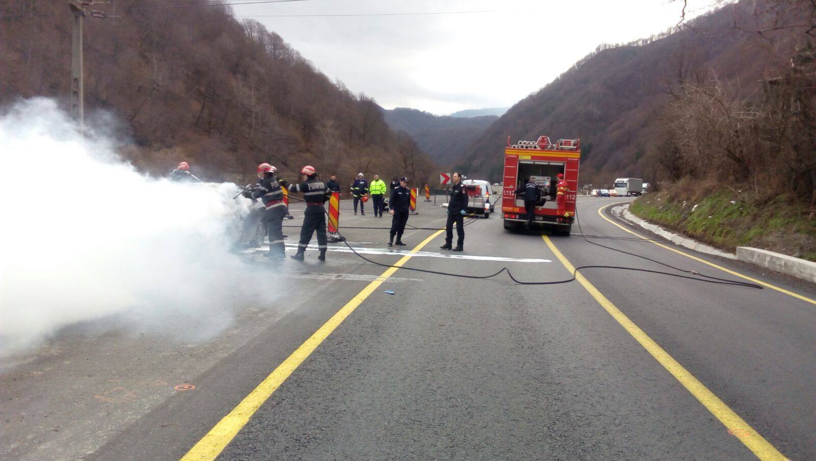 Maşină în flăcări pe DN 7 | Galerie foto