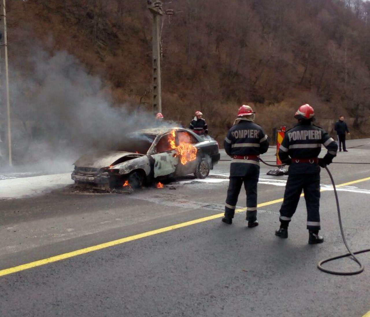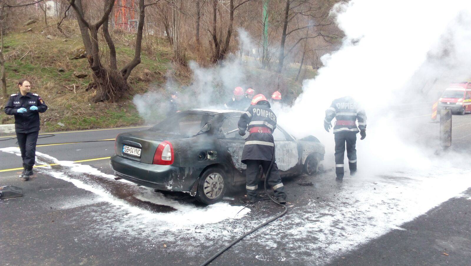 În ciuda intervenţiei pompierilor, maşina, un Daewoo Nubira, a ars aproape în totalite. Cei doi ocupanţi ai autoturismului, un bărbat şi o femeie au ieşit la timp şi nu au fost răniţi.