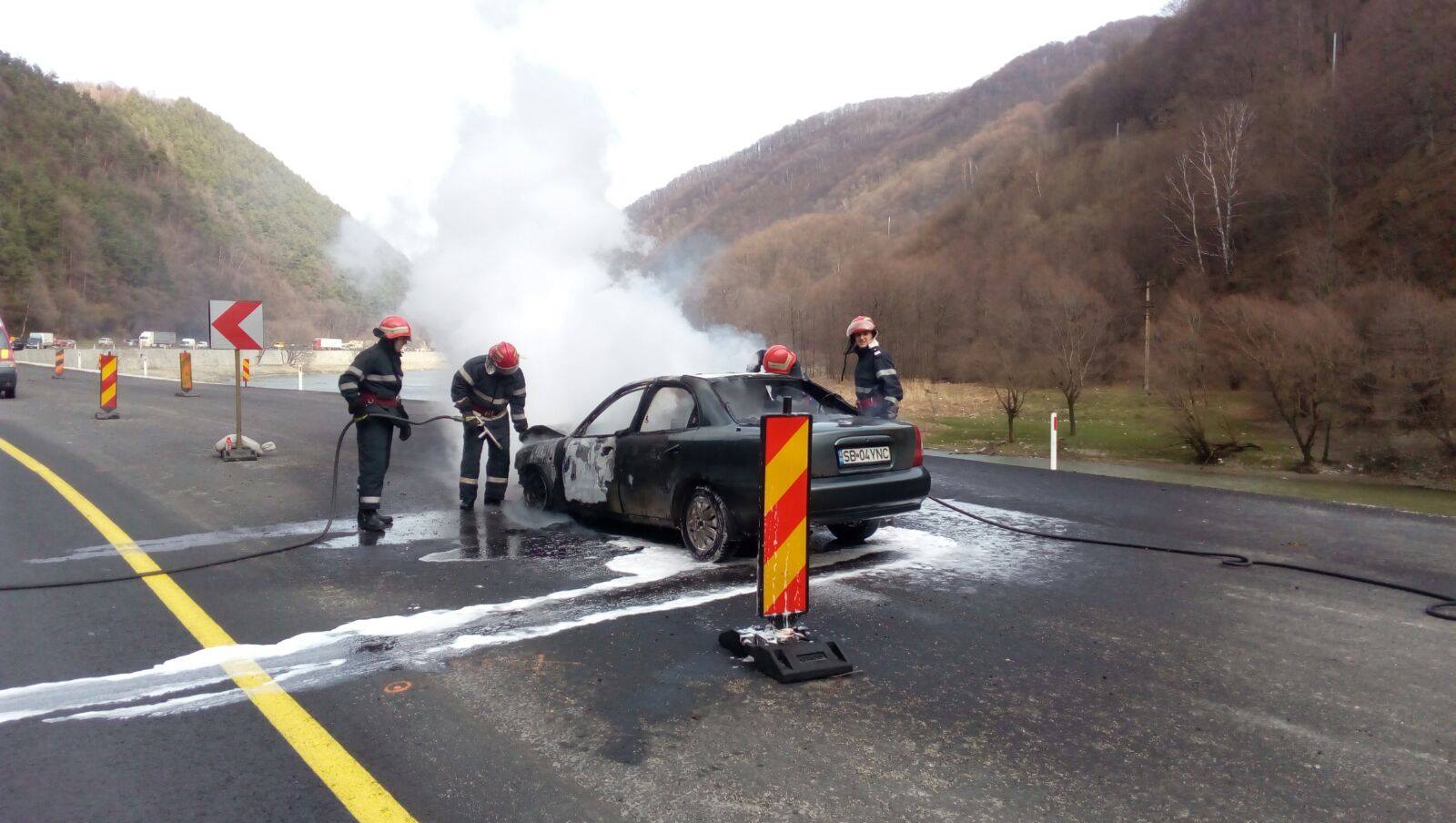 Un autoturism a luat foc pe DN 7, la ieşirea din localitatea Boiţa.
