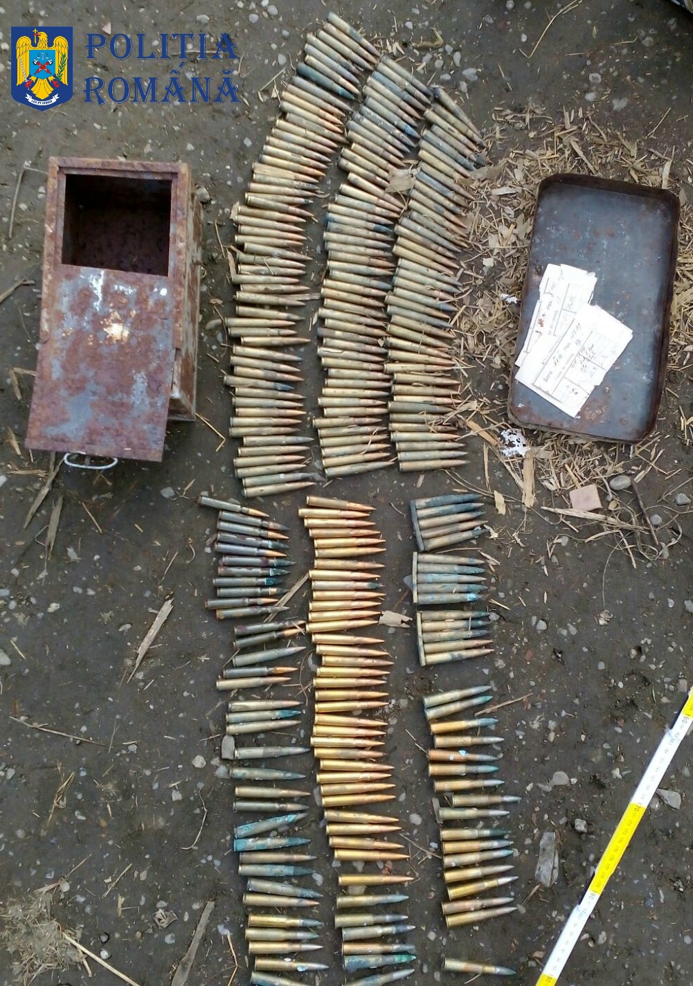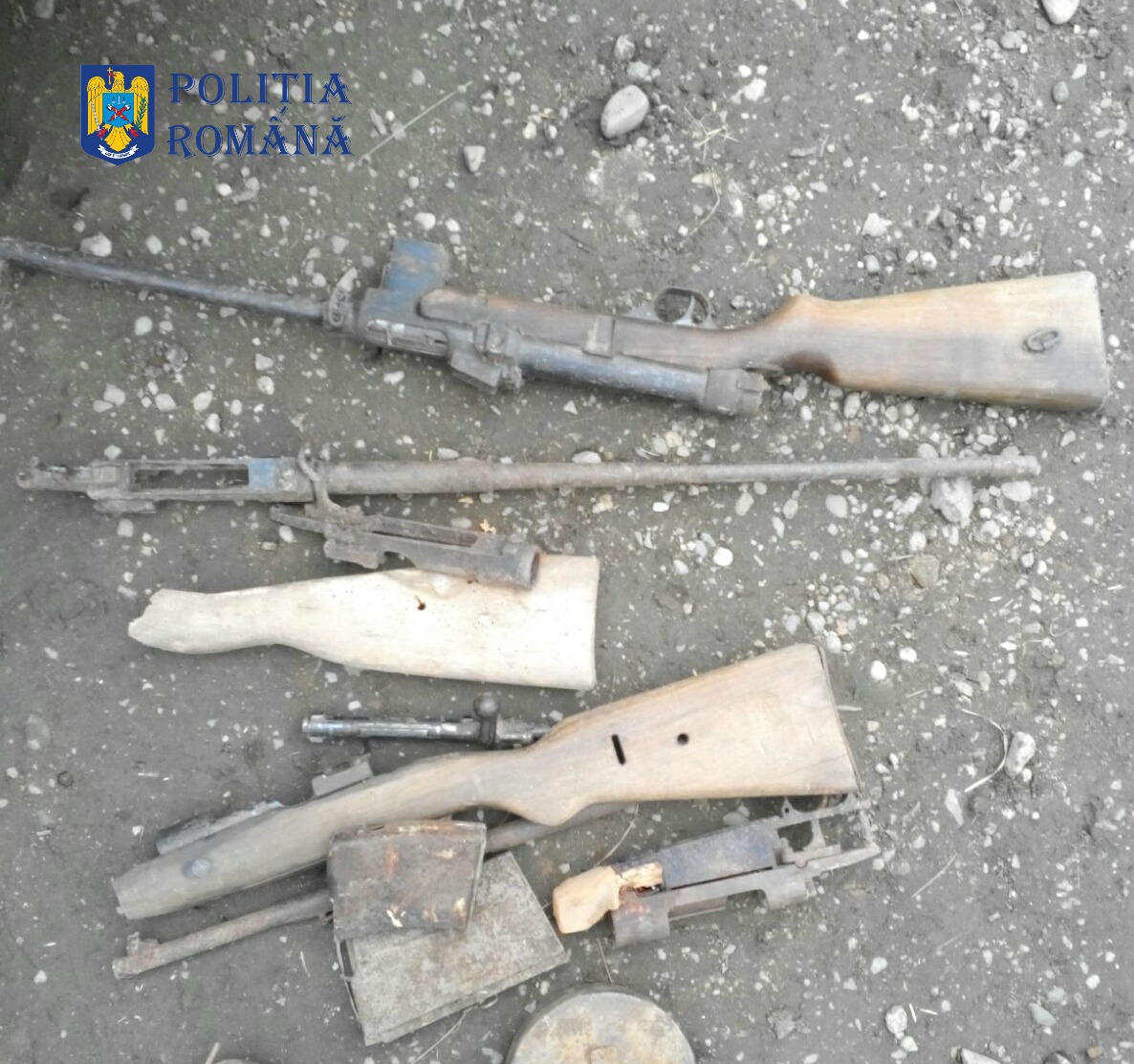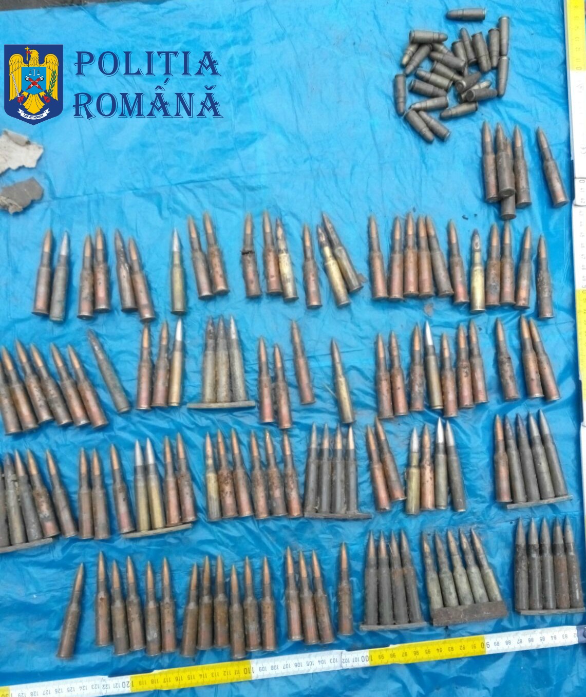 Poliţiştii Serviciului Arme, Explozivi şi Substanţe Periculoase au intervenit la faţa locului unde au identificat mai multe arme şi componente de arme, precum şi o cantitate însemnată de muniţie şi elemente de muniţie (aproximativ 1.400 de cart