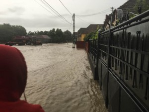 Ploaia torenţială căzută marţi după-amiaza a inundat satul Velţ, străzile fiind repede acoperite de apă care a intrat în curţile oamenilor.