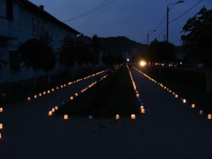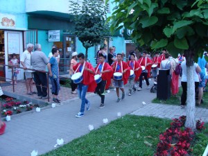 Peste 1.000 de persoane au asistat la spectacolul de foc şi lumină pus în scenă de trupa Hypnosis din Braşov. Jocurile de lasere i-au fascinat deopotrivă şi pe cei mari şi pe cei mici, care au păşit pe Calea Luminii, amenajată cu peste 2.500 de gulguţe realizate şi aprinse de elevii şcolilor din oraş.