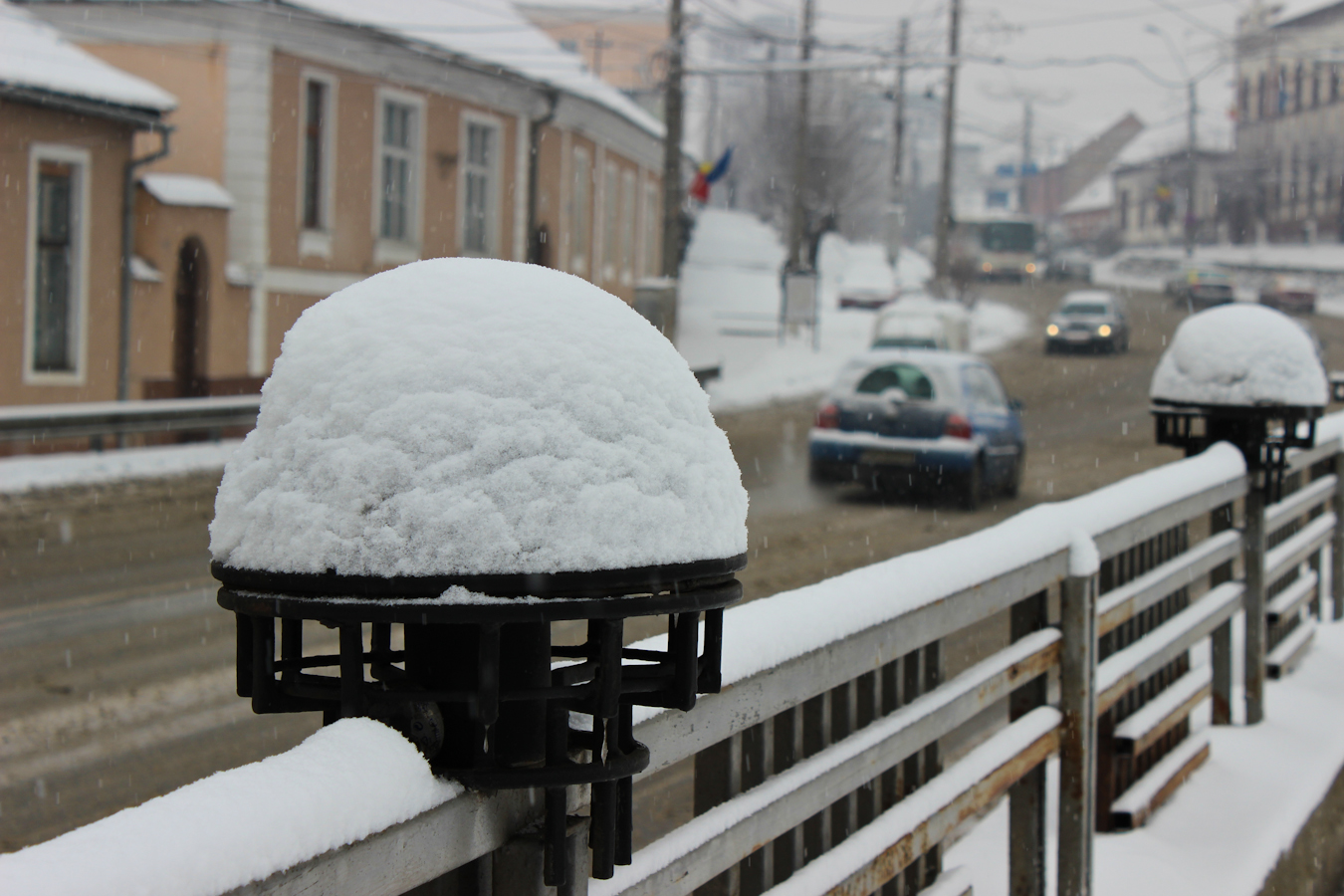 La Mediaș ninge fără încetare de miercuri dimineața.