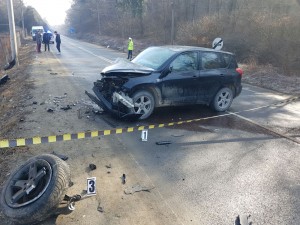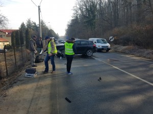 La ieșirea din municipiul Mediaș spre comuna Brateiu, două mașini au intrat în coliziune. Un conducător auto care circula cu viteză excesivă, a derapat, a pătruns pe contrasens și a lovit un autoturism care circula regulamentar.