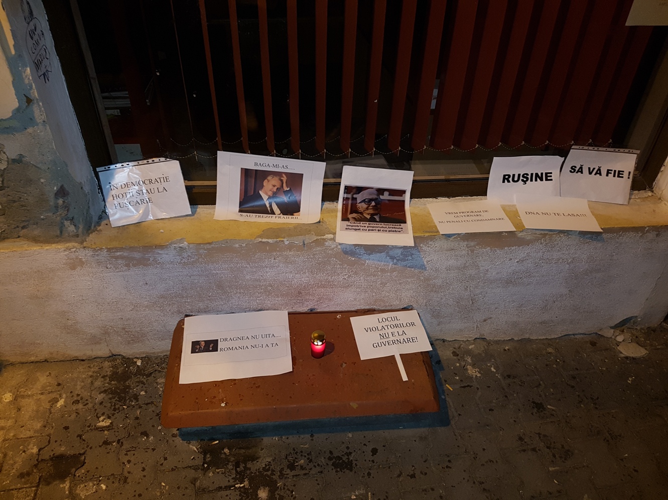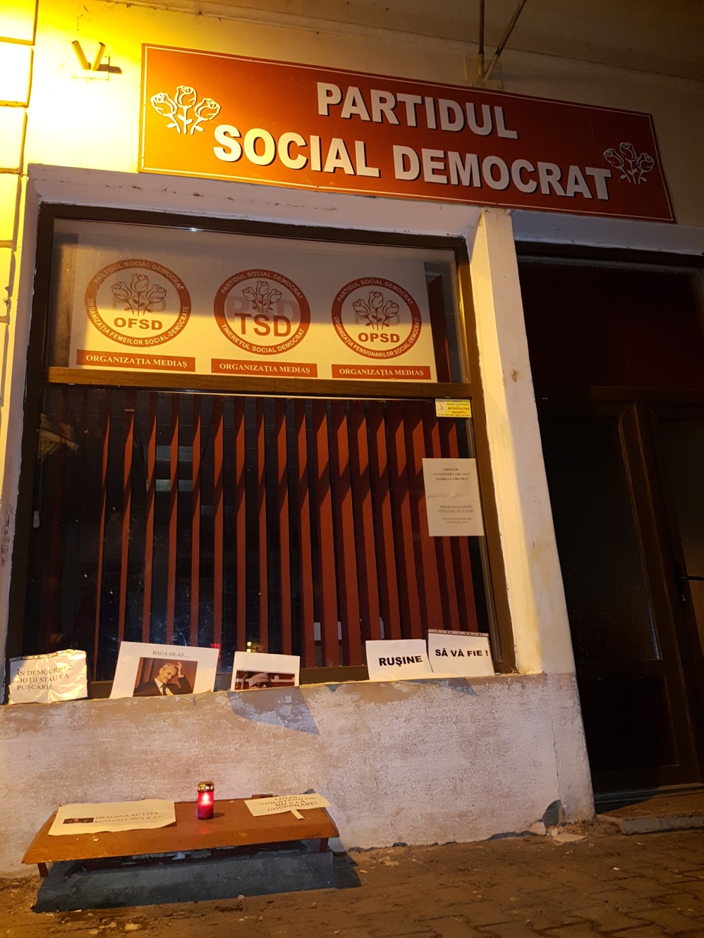 Numărul protestarilor a ajuns la circa 1500. Aceștia au plecat în marș spre centrul istoric și s-au oprit în fața sediului PSD, unde au lăsat mai multe mesaje, candele și afișe.