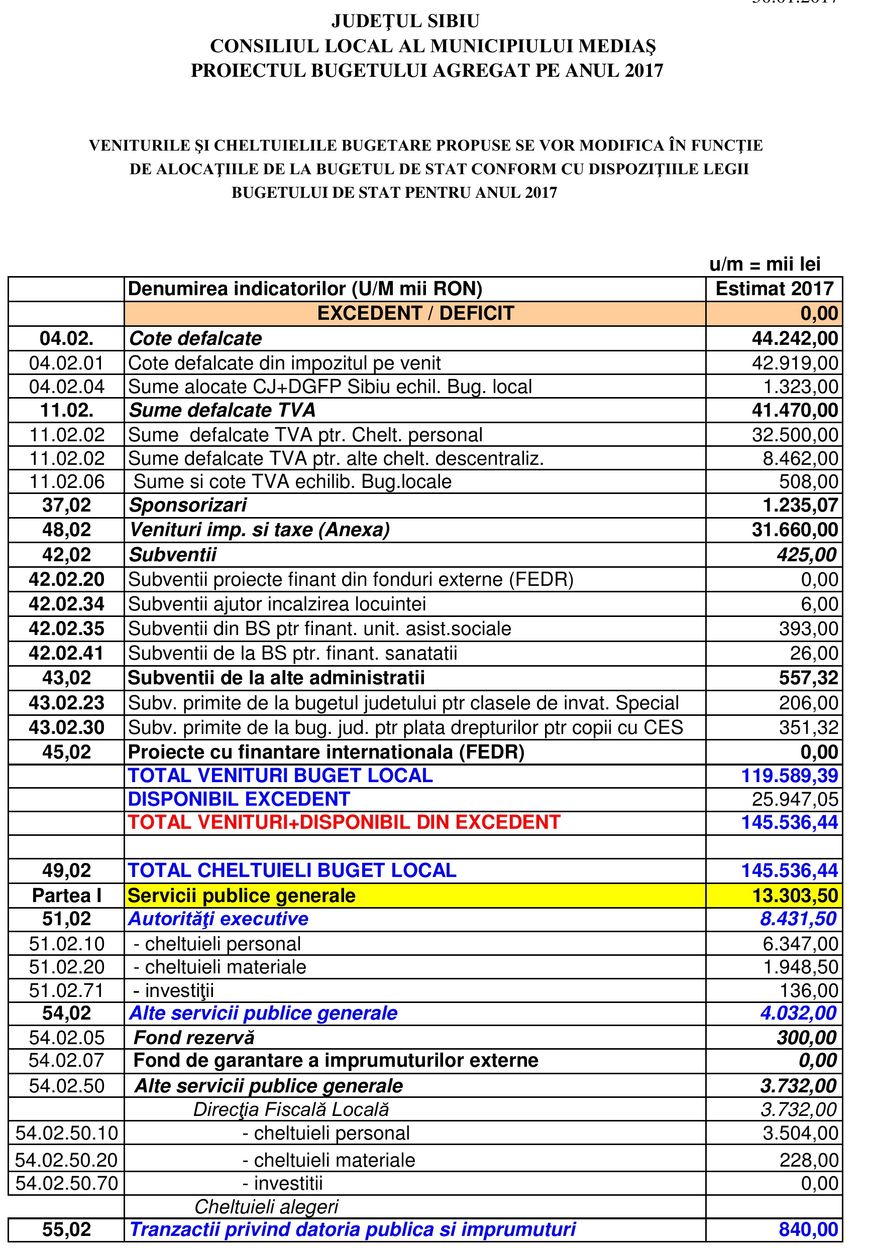 Aceasta nu este însă forma finala a bugetului, în condiţiile în care propunerile de venituri și cheltuieli bugetare propuse se vor modifica în funcție de alocațiile de la bugetul de stat conform cu dispozițiile legii bugetului de stat pe anul 2017.