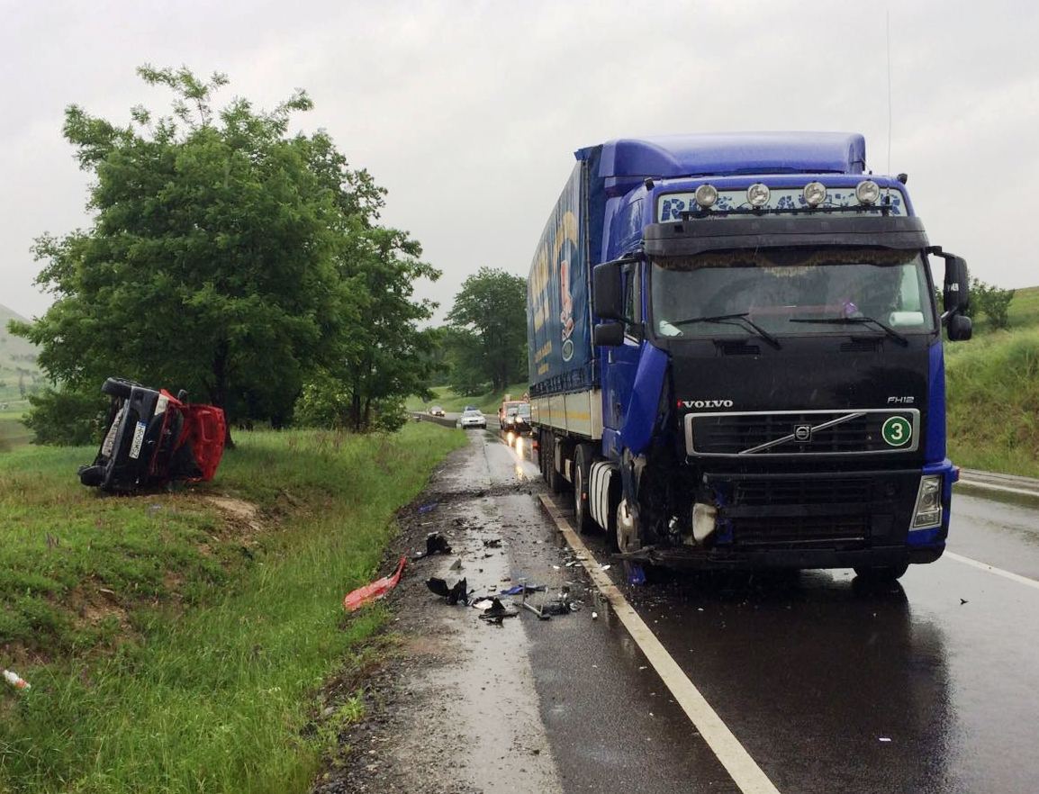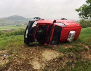 Din impact, mașina a fost proiectată în afara părții carosabile, unde s-a răsturnat. Șoferul care a produs accidentul, un bărbat de 31 ani dinHarghita, a fost rănit și transportat la Spitalul Municipal Mediaș. Traficul se desfășoară alternativ.