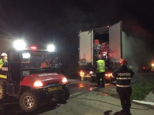 Un tir a luat foc pe DN 14, în comuna Axente Sever.