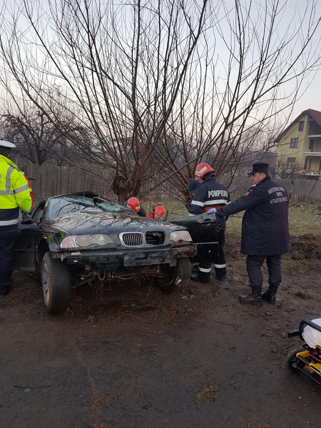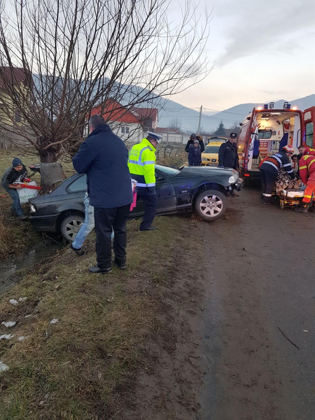 O conducătoare auto în vârstă de 28 ani din județul Brașov, a pierdut controlul direcției într-o curbă la stânga în zona Gura-Râului. Autoturismul a ieșit în afara părții carosabile. În urma impactului, femeia de la volan a fost rănită.