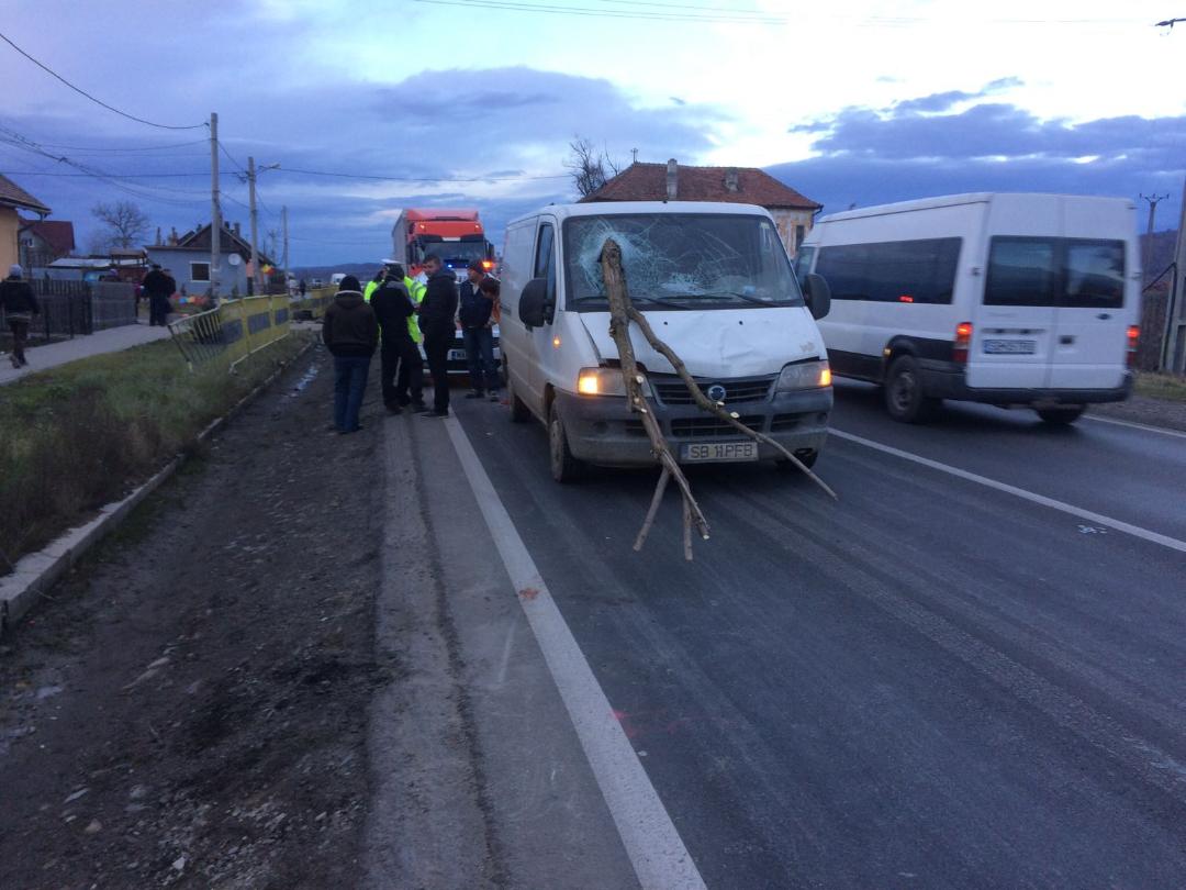 Pieton lovit de un microbuz la Tălmaciu | FOTO