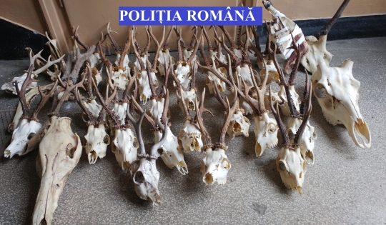 În urma perchezițiilor, au fost identificate o armă neletală, pentru care persoana în cauză nu deţinea permis de port armă, o arma letală cu glonţ, muniţie letală, un craniu de urs, 67 trofee din speciile cerb şi căprior, carne de vânat, 9 cuțite de dimensiuni mari, o suliţă artizanală, precum şi alte bunuri.