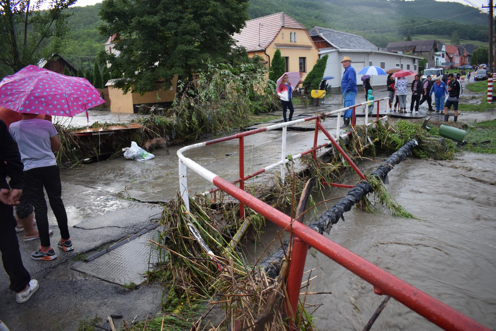 Pârâul ce vine din Boian, o localitate puternic afectată de inundaţii, transformat de ploaia abundentă într-un adevărat torent, a avariat podul și câteva locuințe din cartierul Târnăvioara. Pompierii Voluntari au ajutat aseară la evacuarea apei din pivnițele inundate din zonă şi au degajat drumul de acces.