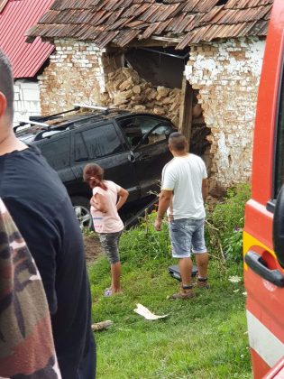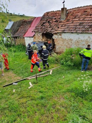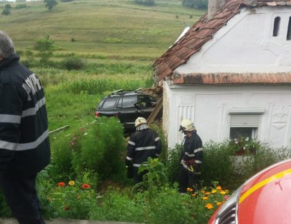 O mașină a intrat în zidul unei case, sâmbătă după-amiază în localitatea Pelișor.
