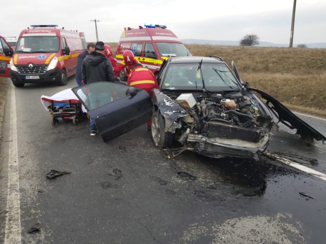 În accidentul de pe DJ 106 au fost implicate 2 mașini. Un șofer care circula spre Sibiu, din primele cercetări se pare că ar fi evitat un câine, a pătruns pe contrasens unde a intrat în coliziune cu un auto condus regulamentar spre Agnita.