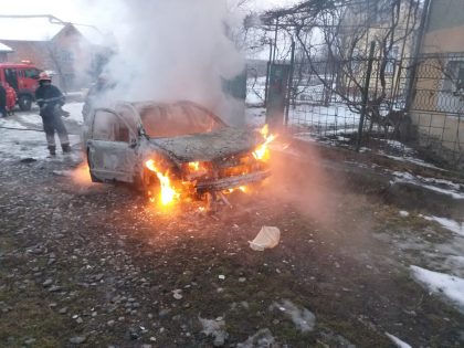 Un autoturism a fost carbonizat în urma unui incendiu produs de un scurtcircuit electric.