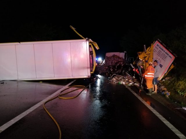 Coliziune între 2 autocamioane la intrare în Sighișoara în noaptea de vineri spre sâmbătă.