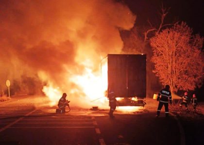 ,,La sosirea forțelor la fața locului, incendiul se manifesta generalizat atât la capul tractor cât și la remorcă. Pompierii militari au intervenit pentru lichidarea incendiului aproximativ 3 ore. Nu au fost victime.