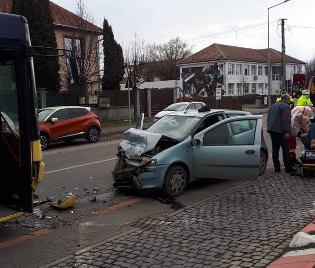 ISU Sibiu a intervenit de urgență cu un echipaj SMURD cu medic în municipiul Sibiu, strada Calea Poplăcii, la un accident rutier produs între un autoturism și un autobuz. La fața locului s-au acordat îngrijiri medicale unui bărbat (șoferul autoturismului) care a fost transportat la UPU Sibiu, conștient, politraumatizat” a declarat Alina Voina, Purtătorul de cuvânt al ISU Sibiu.