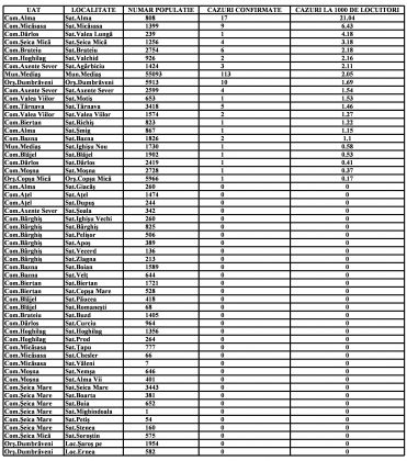 Rata incidenței cazurilor COVID-19 pentru ziua de duminică.