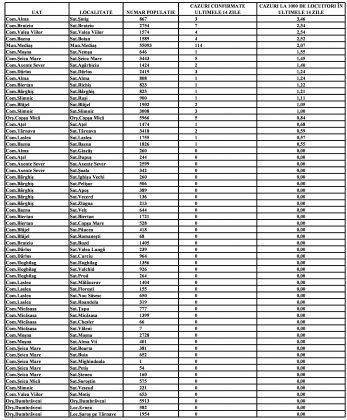 Rata incidenței cazurilor COVID-19 pentru ziua de luni.