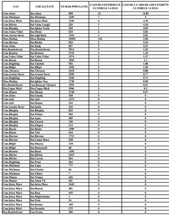 Rata incidenței cazurilor COVID-19 pentru ziua de miercuri.