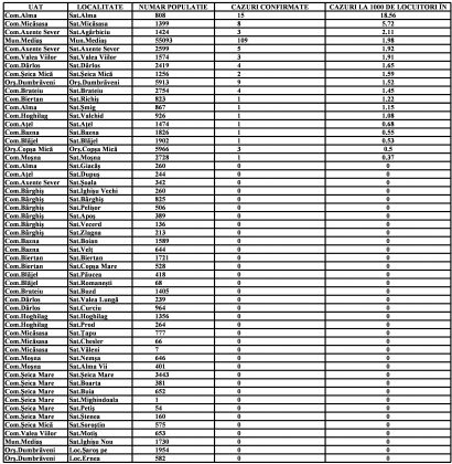 Rata incidenței cazurilor COVID-19 pentru ziua de miercuri.