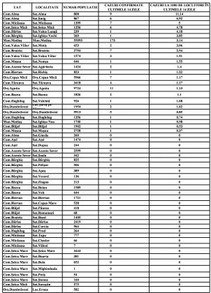 Conform Prefecturii Sibiu, în municipiul Mediaș rata incidenței cazurilor de COVID-19 era sâmbătă de 3,14 față de 3,16 conform raportării de vineri. În ceea ce privește județul Sibiu, rata este de 1,67 cazuri la mia de locuitori, față de 1,71 pe 14 ianuarie.