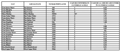 Localitățile din zona Mediaș care nu mai apar în tabel au incidența zero.