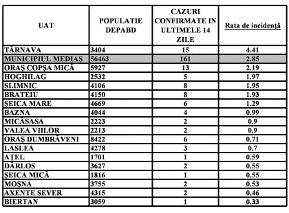 Localitățile din zona Mediaș care nu mai apar în tabel au incidența zero.