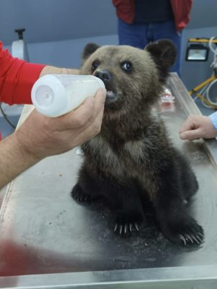 Având în vedere că puișorul de urs prezenta leziuni la nivelul unui membru, survenite cel mai probabil prin cădere/aluncare de la înălțime, reprezentanții Gărzii Naționale de Mediu– Comisariatul Județean Sibiu, Direcției Sanitare Veterinare și pentru Siguranța Alimentelor Sibiu și Agenției pentru Protecția Mediului Sibiu au luat măsura transportării exemplarului de urs brun la Gradina Zoologică Sibiu pentru acordarea de îngrijiri medicale și hrănire” se arată într-un comunicat de presă remis de IPJ Sibiu.