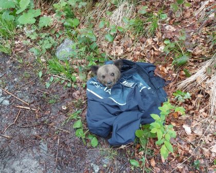 Un pui de urs a fost salvat de polițiștii sibieni.