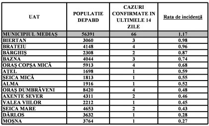 Localitățile din zona Mediaș care nu mai apar în tabel au incidența zero.