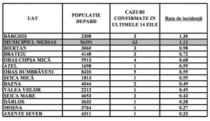 Localitățile din zona Mediaș care nu mai apar în tabel au incidența zero.