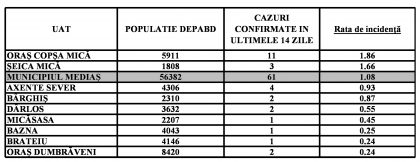 Localitățile din zona Mediaș care nu mai apar în tabel au incidența zero.