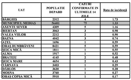 Localitățile din zona Mediaș care nu mai apar în tabel au incidența zero.